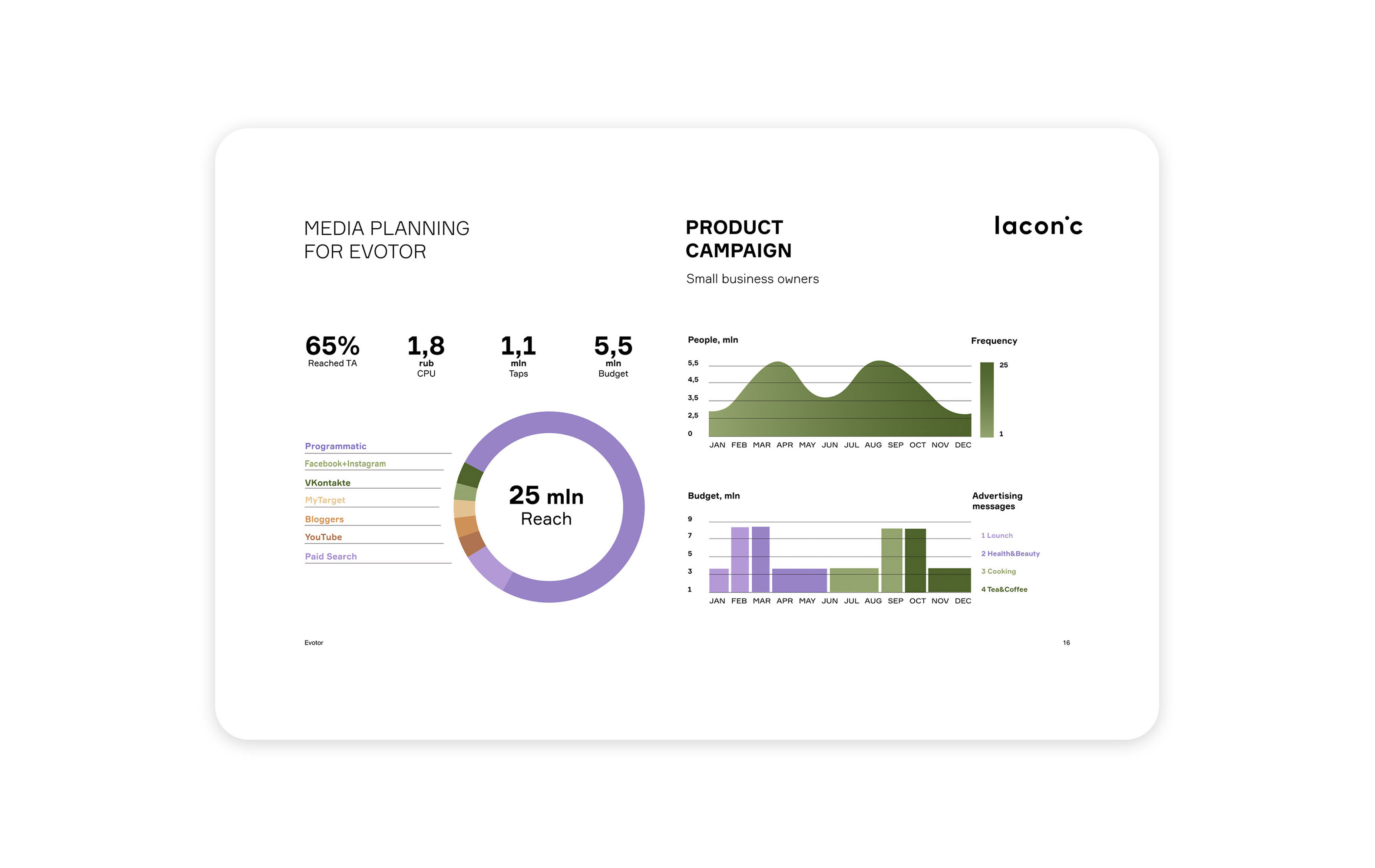 Laconic came up with simple and clear idea — media agencies have a very complex and hard to comprehend product with huge amount of giant tables and numbers, why need to overload client’s heads?